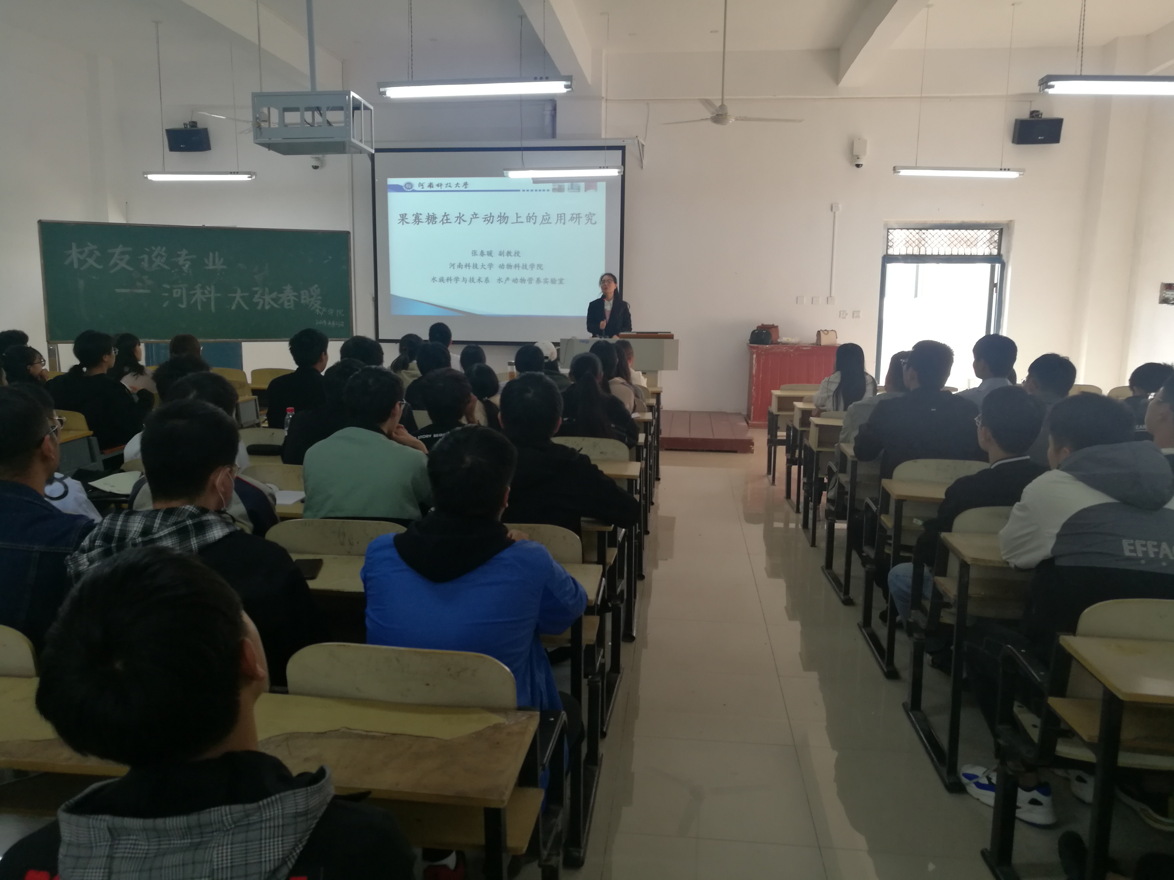 10月23日下午,河南科技大学张春暖副教授在二教604为水产学院师生作了一场《果寡糖在水产动物上的应用研究》的学术报告,会议由水产学院科研副院长吴坤杰主持。水产学院专业老师和部分学生参加了学术报告会。