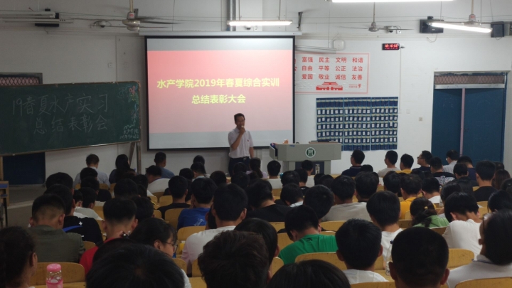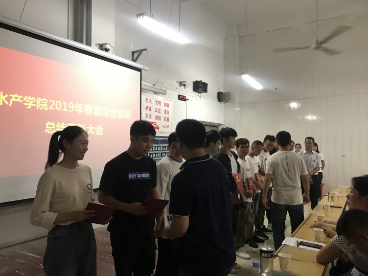 9月26日下午5时,水产学院在二教404召开了2019年春夏综合实训总结表彰大会。水产学院党总支书记郭旭升、学院组织员黄光玲、教学秘书伦峰、科研秘书雷宇杰、实验室主任汪成竹、以及19级辅导员段丁毓、苏超群等参加了此次会议。学院还邀请到了江阴赈兴生物工程有限公司丁希民总经理、无锡华海生物科技有限公司李永胜总经理为此次表彰大会进行颁奖。会议由教学秘书伦峰主持。