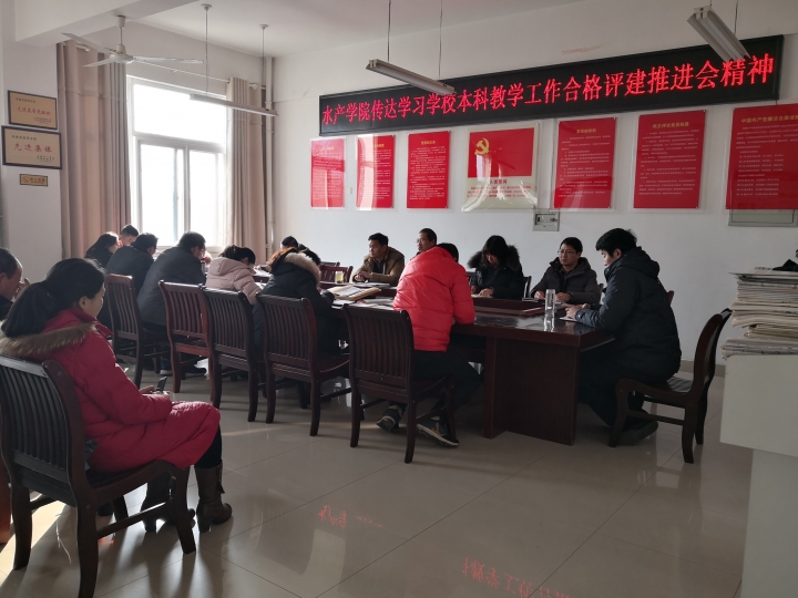 1月14日下午,水产学院在2C330召开全体教职工会议,传达学习学校本科教学工作合格评建推进会精神。会议由水产学院党总支书记郭旭升主持。