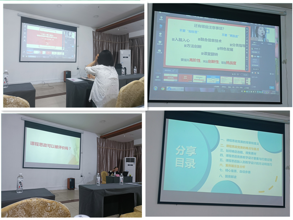 本次研修班培训采用线上、线下两种方式进行,培训专家有来自昆明理工大学的教育部首批课程思政教学名师李媛媛老师,武汉大学课程思政教学研究中心副主任王郢老师,西北农林科技大学的刘威老师(陕西省课程思政大练兵“标兵”)。三位培训教师结合自己的专长分别以《国家级课程思政示范课的建设和申报》、《课程思政的评价》、《课程思政教学竞赛练兵备赛与参赛经验分享》为题进行了详细的授课。