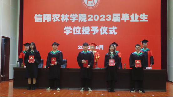副院长伦峰宣读了水产学院2023届优秀应届毕业生名单。与会领导为2023届优秀应届毕业生颁发了荣誉证书。beat365在线平台官网学位评定委员会委员、水产学院学位评定分委员会主席、水产学院院长郭旭升同志宣读2023届本科毕业生学士学位授予决定。beat365在线平台官网学位评定委员会副主席、副校长赵聘,水产学院学位评定分委员会委员为已获首批学士学位的143名2023届本科毕业生、2020届和2022届回校参加学位补授仪式的21名毕业生代表颁发了学位证书并拨正流苏。
