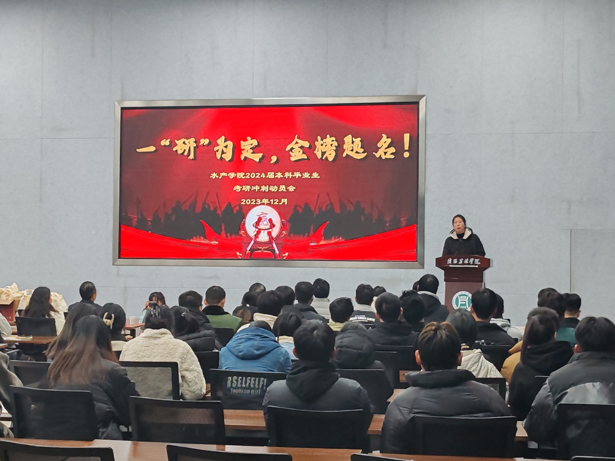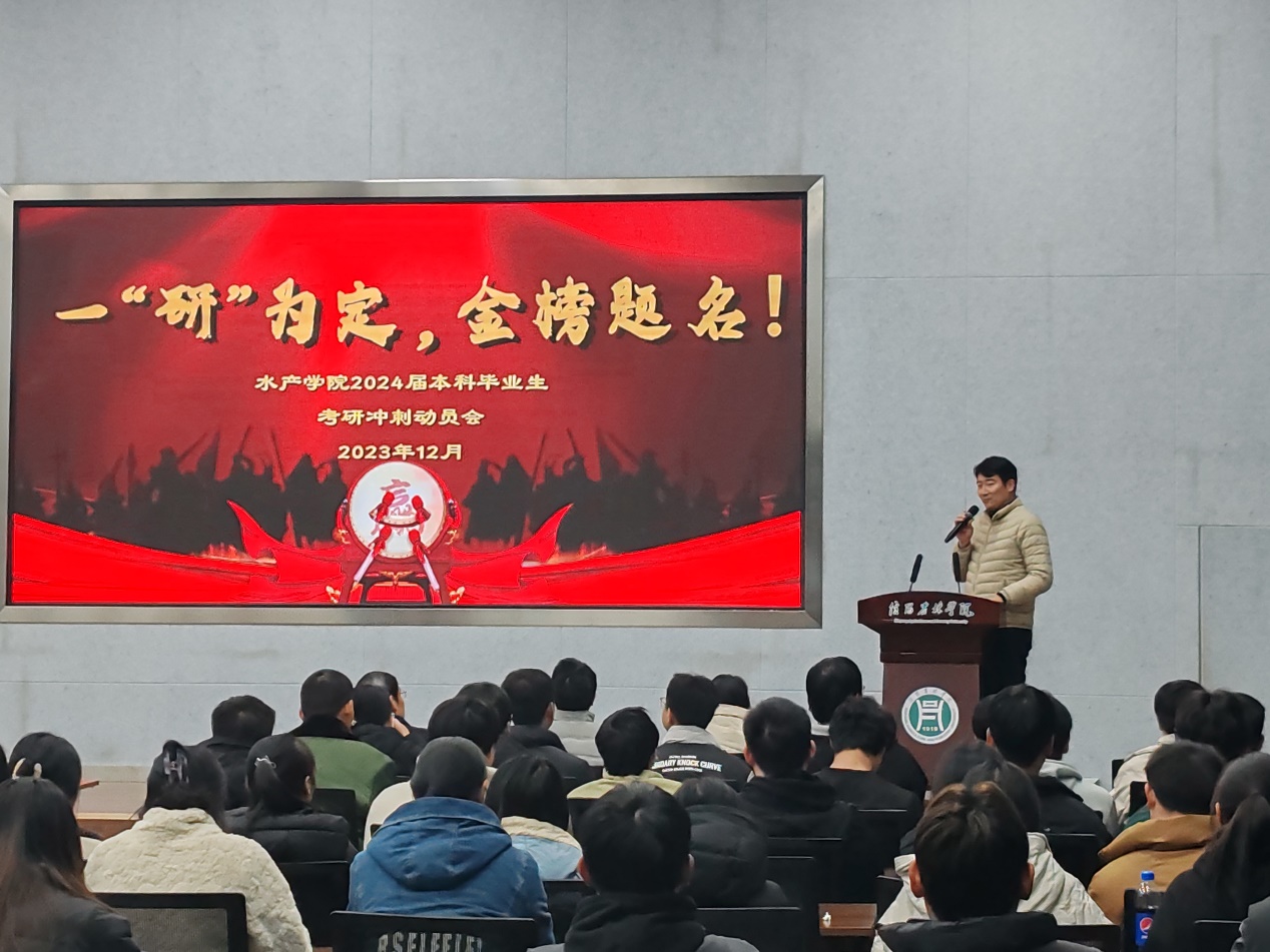 12月12日下午,水产学院在双创中心一楼多媒体室举办了2024届本科毕业生考研冲刺动员会。副校长赵聘,水产学院党总支书记、院长郭旭升,副书记黄光玲,副院长吴坤杰,团总支书记刘开放等教师代表和124名报名研招考试的2024届本科毕业生参会。会议由黄光玲主持。