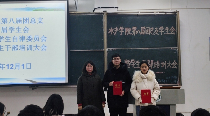 活动伊始,水产学院团总支书记刘开放老师宣读水产学院第八届团总支、新一届学生会、第一届大学生自律委员会名单,由黄光玲书记、刘开放书记、段丁毓老师、檀晨曦老师颁发聘书。当选为水产学院第八届团总支副书记的郝丽丽同学和新一届学生会、第一届大学生自律委员会主席贾玉祥同学代表发言。
