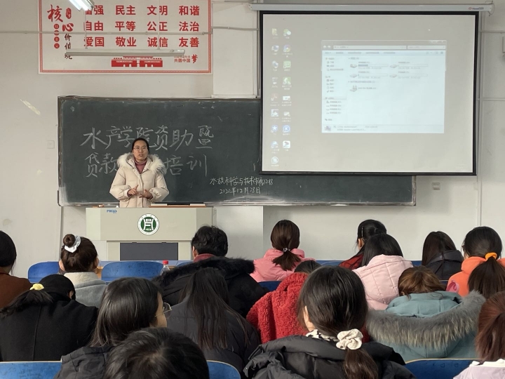 为向学生介绍国家资助以及诚信还贷的重要性,12月28日,水产学院在一教A105举行了2020年国家资助政策知识讲座,参加此次讲座的是水产学院贷款学生以及获得资助的学生代表。本次讲座由资助专员李建玲老师进行讲解。