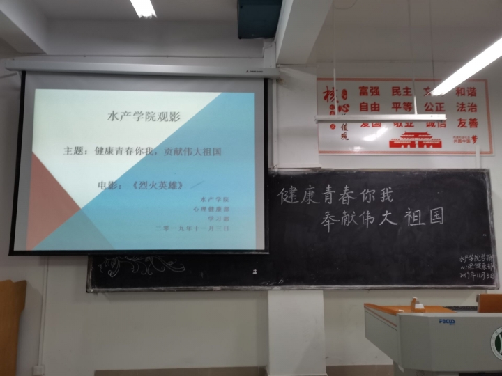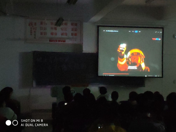 11月3日晚七点,水产学院19级学生在一教A104和105教室开展观看心理电影活动。本次观看的影片是《烈火英雄》,这部影片讲述了沿海油罐区发生火灾,消防队伍上下级团结一致,誓死抵抗,以生命维护国家及人民财产安全的故事。表达和宣扬了消防队员在这样的危难时刻,告别家人赶赴火场,去营救威胁全市、全省甚至国家安全和利益。