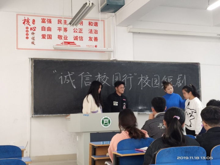 为了进一步普及学生资助政策,培养大学生的诚信意识和观念,树立诚信自强的典型人物,扩大社会影响力。增强学生的诚信意识,丰富大学生的业余生活。我院在学校“诚信校园行”大赛号召下,于11月18日中午在一教a203教室举行“诚信校园行”校园短剧初赛。水产学院学工组资助专员李建玲老师以及19级辅导员段丁毓老师,18级、19级学生参加了此次竞选。