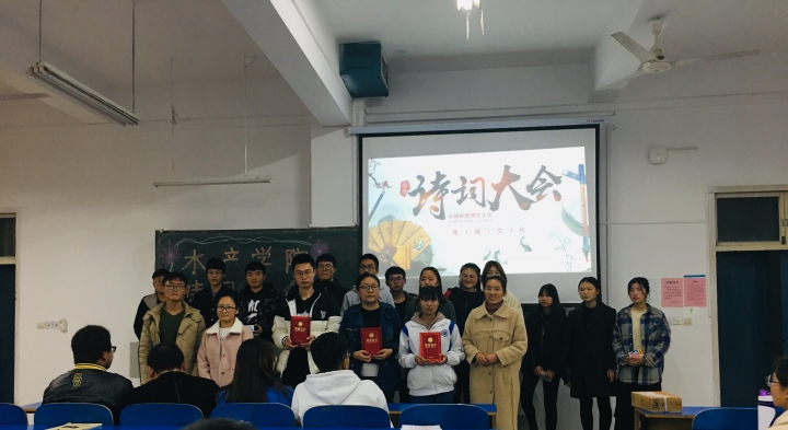 为弘扬中华民族优秀传统文化,传承国学经典,丰富学生的精神生活,水产学院于11月19日晚7点在一教105举办第一届诗词大会,参加此次大会的评委有大一新生辅导员李建玲、17级主要班干部。我院共有5个队参加此次比赛,分别是水产养殖学2018-1班、水产养殖学2018-2班、水产养殖学2018-3班、水组科学与技术2018-1班、水族科学与技术2018-2班。本次比赛由18级水族科学与技术2018-1班王春波、2018级水族科学与技术2班张淑稳同学担任主持人,18级全体学生参与。