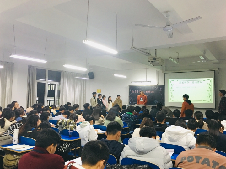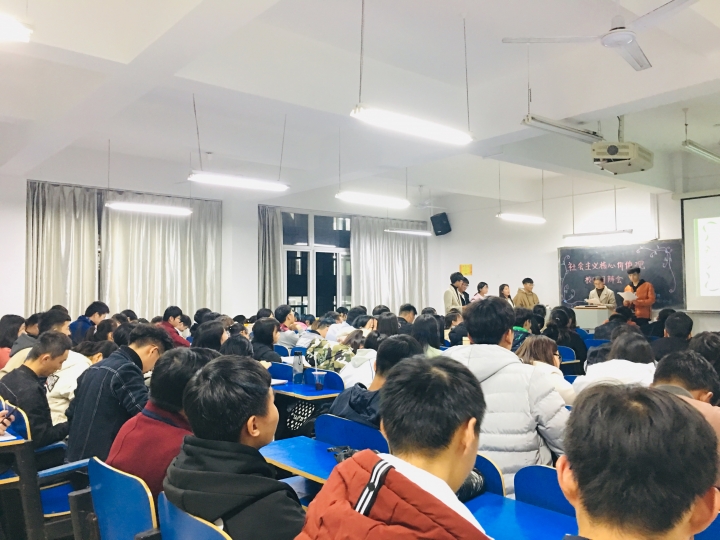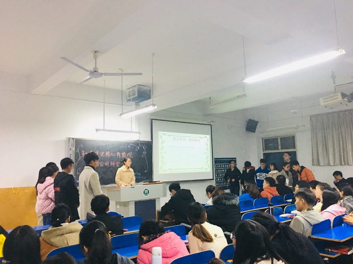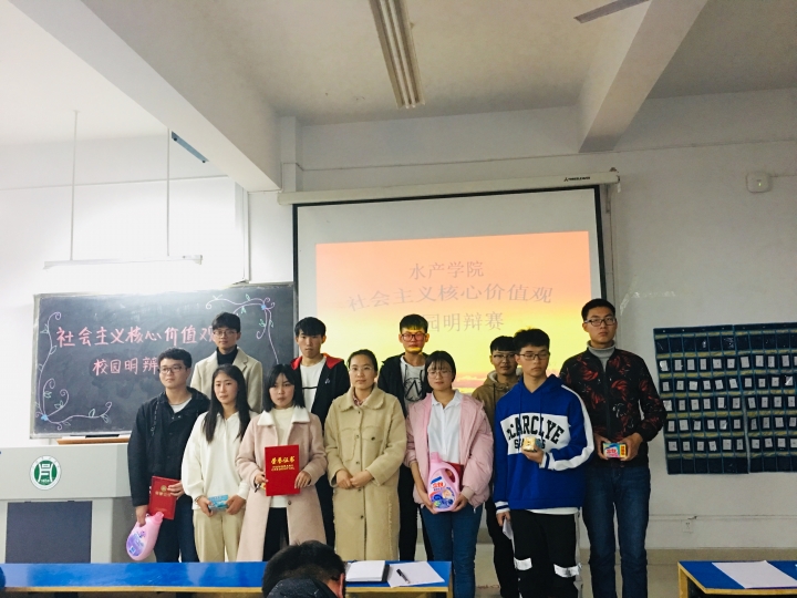 为提升大学生对社会主义核心价值观的认识,提高大学生的辩论水评,水产学院于2018年11月28日晚7点,在一教A203举办了践行社会主义核心价值观主题辩论赛,加此次大会的评委有大一新生辅导员李建玲、17级主要班干部。本次辩论赛由王亚娓、李谭栋主持,18级全体学生参与。