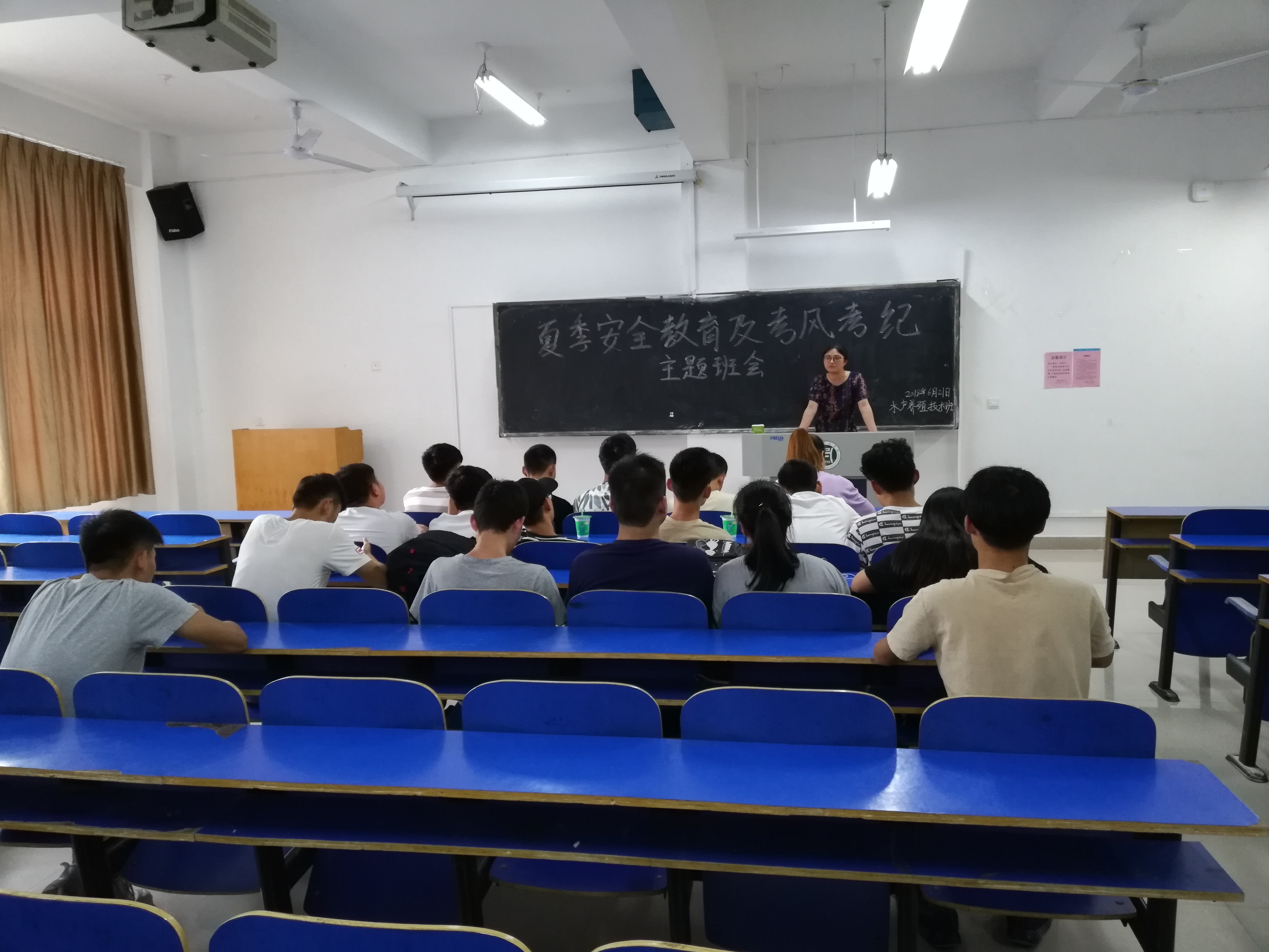 6月26日、27日,水产学院各班陆续召开期末诚信考试教育暨暑期安全教育主题班会。会上,辅导员老师根据学校要求,结合《beat365在线平台官网学生工作制度汇编》相关规定,要求同学们认真备考、杜绝作弊,并说明作弊的危害后果,引导同学们诚信考试。暑期安全教育方面,辅导员对人身安全、财产安全、交通安全、宿舍安全以及假期出行、打工等进行了讲解,要求同学们提高安全意识,远离安全隐患。暑假期间不组织或参与外出打工;回家乘坐正规渠道车辆,最好结伴而行,并随时将行程告诉父母;离校前关好门窗,贵重物品不要留在寝室;假期里自觉远离传销陷阱、邪教组织。鼓励同学们在暑假期间阅读有益书籍,积累知识,开阔眼界。(晏方舟)