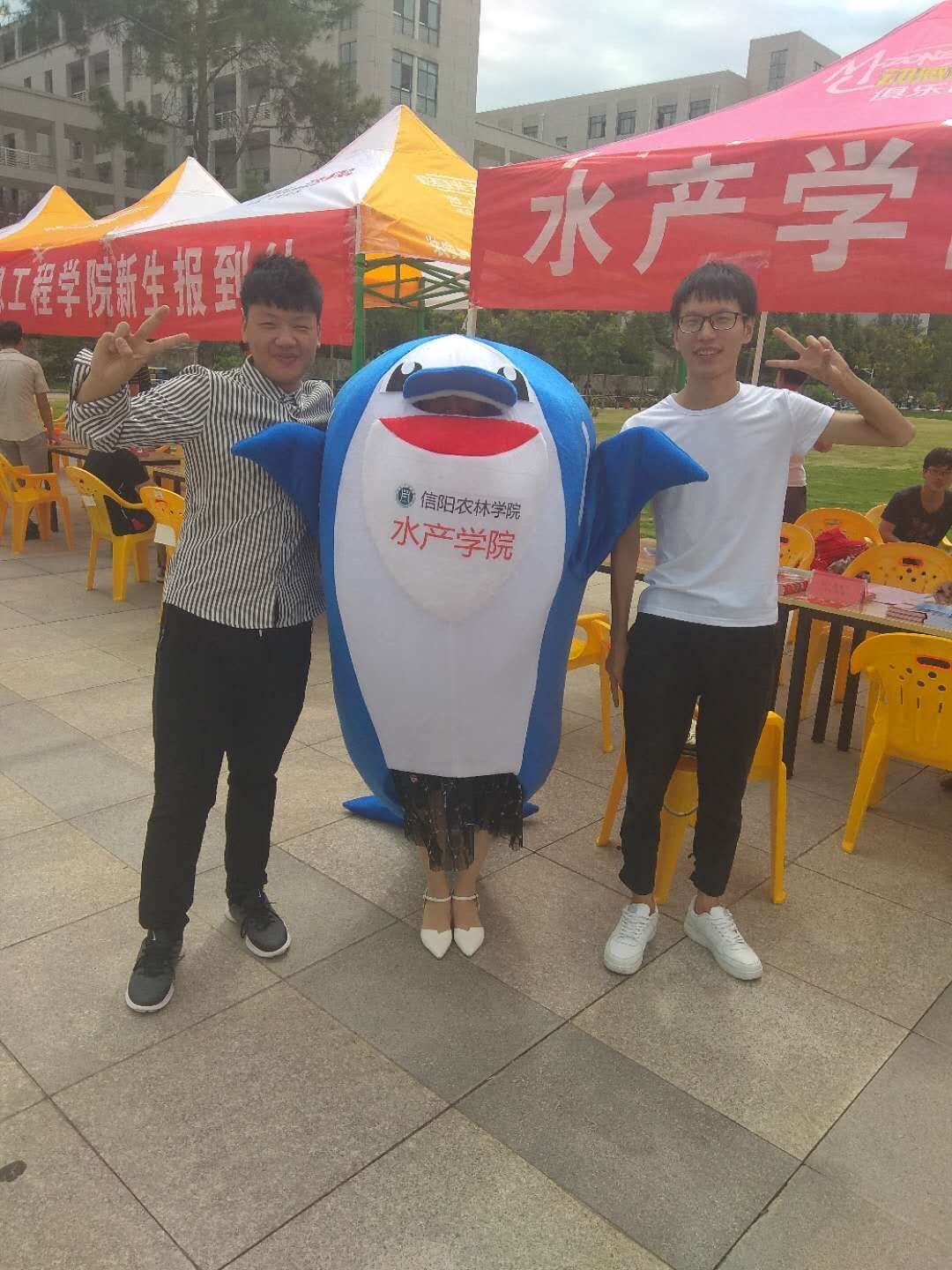 八方来客,相约九月,伴随着日丽和风,水产学院又迎来了一批朝气蓬勃的新面孔。我院今年的迎新工作,除了一如既往地为2018级新同学提供热情周到的服务外,还有一个温馨有特色的秘密武器——海豚人偶。志愿者们争相穿上印着“beat365在线平台官网水产学院”字样的海豚人偶在迎新现场来回穿行,憨态可掬,喜感十足。只见他热情的与来往的新生打招呼,时不时还跳上一段可爱的舞蹈,引得同学们哈哈大笑,迎新现场气氛轻松又热烈。此外,水产学院还为每位新同学送上了一只海豚毛绒玩具,旨在突显水产特色,增强新同学对水产专业的兴趣。