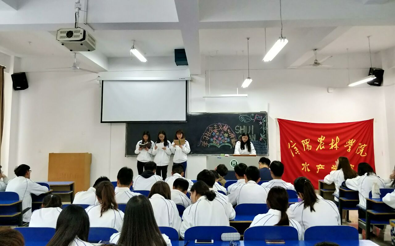 4月26日中午,水产学院2017级在一教A104开展“学习社会主义核心价值观”主题团日活动。水产学院2017级全体学生以及我院主席团参加了此次活动。活动由17级团支书刘玉蝶主持。
