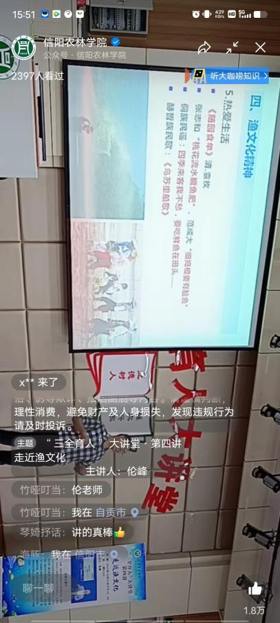 本次讲座让更多的同学们了解和关注渔文化,对渔文化产生兴趣,促进渔文化的传承创新与发展,引导青年大学生树立知农爱农强农兴农志向,厚植大国三农情怀,脚踏实地,努力学习,为自己精彩的人生涂上浓墨重彩的一笔。(撰稿人:刘开放;审稿人:黄光玲;终审人:郭旭升)