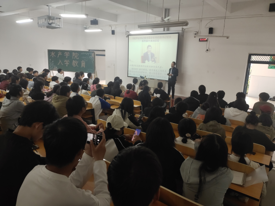 2023年9月25日上午,水产学院在2教306教室开展新生入学教育之院情介绍。讲座由水产学院党总支书记、院长郭旭升主讲,学院2023级全体新生、新生辅导员及部分教师代表参加了本次讲座。