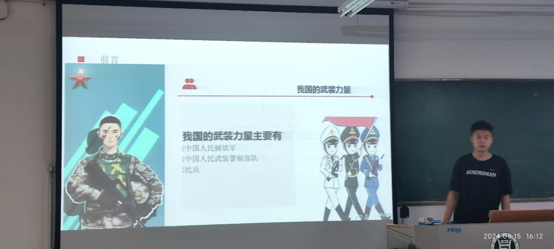 此次讲座分为两部分内容,一部分内容由我院武装专干李建玲老师进行讲解,一部分内容由退役复学学生何柏喜为同学们分享部队生活。
