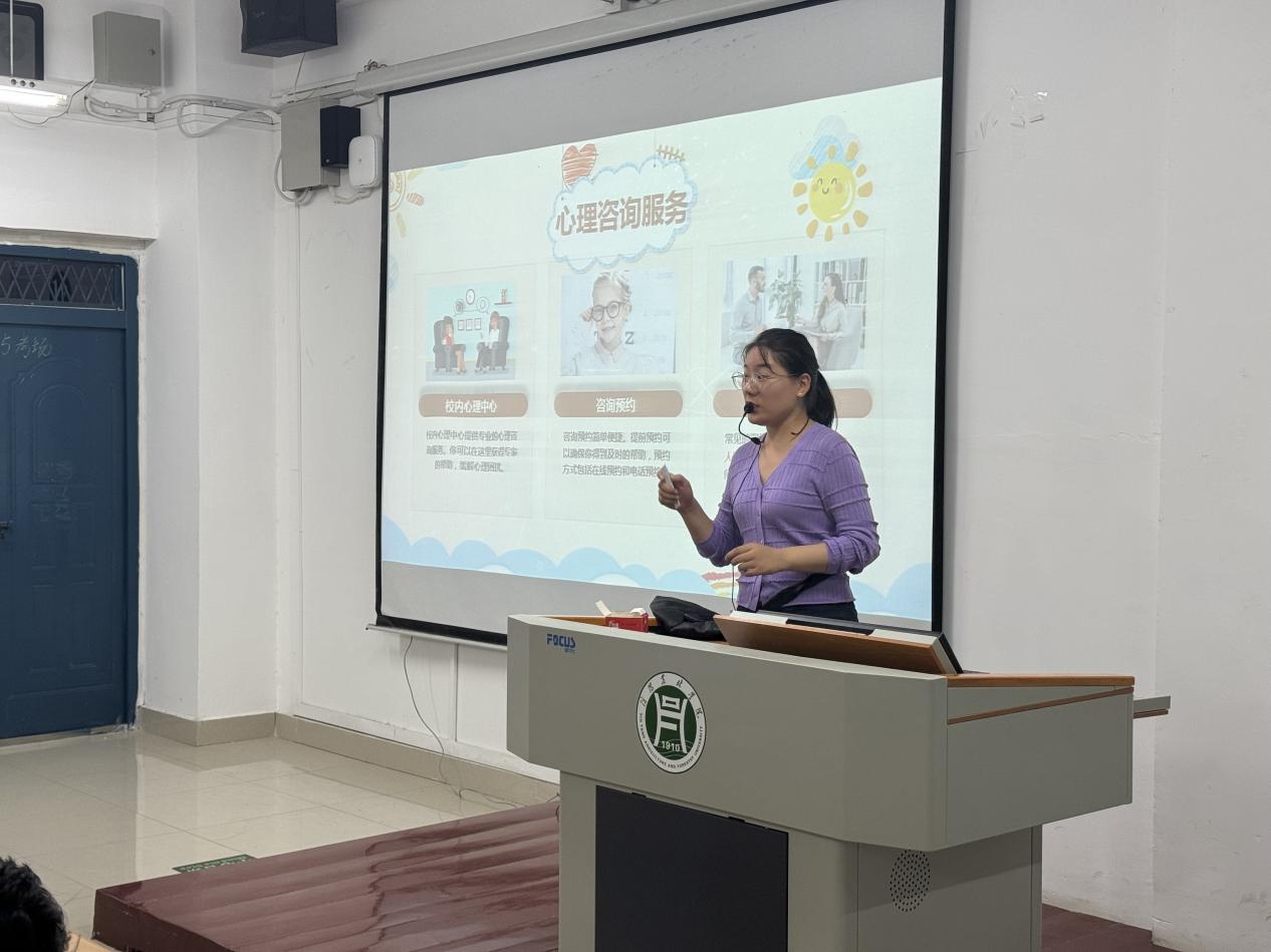 黄倩倩老师首先解释了心理健康的具体内涵,随后通过运用生动的案例和互动问答等形式,深入浅出地讲解了心理健康的重要性、常见心理问题及应对策略。她还引导学生提升自我调节能力,学会舒缓自己的不良情绪,同时对我院“水韵怡心”二级心理辅导站做了详细介绍,希望通过循循善诱的方式为新生们树立积极求助的意识。