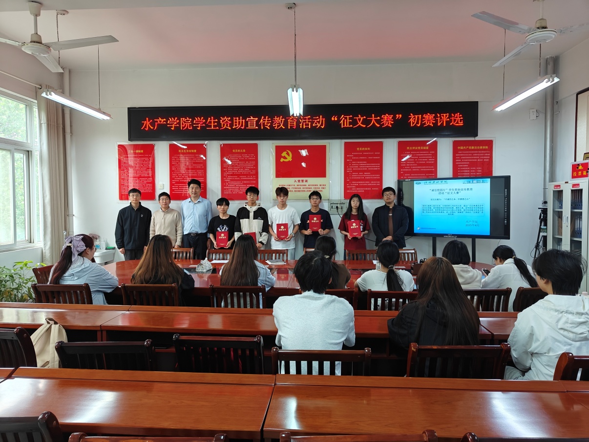 本次大赛,共收到投稿作品21篇。参赛形式以征文作品展示进行,通过人物故事讲述受助成长体会,宣传学生资助政策体系。水产学院党委副书记冯德祥、专职辅导员彭冶和兼职辅导员雷琦参与现场评审,最终经过激烈角逐,李欣峰和孙冰涛同学荣获一等奖;杨亚楠、张灿和李江龙同学荣获二等奖;刘思婷、韩恩光、刘昂、潘姿涵、杜晶和高彩菊同学荣获三等奖。