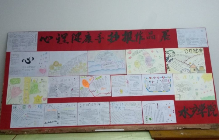 为加强学生的心理健康教育,普及心理文化的重要性,让学生学会倾听自己内心的声音,水产学院开展了一系列的心理活动,其中手抄报、绘画比赛深受学生的喜爱,同学们参与热情高涨,共上交作品几十余篇。其作品主题鲜明,构思新颖,画面美观,文字优美、色彩和谐,在手抄报中融入了自己对心理健康教育的理解,寓意深刻。2018级新生积极参与了此次活动,手抄报、绘画比赛经学工组全体教师评议,共有18篇作品被评为优秀作品,并在学校展览。