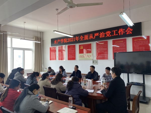 3月23日下午,水产学院党总支在2C330党员活动室召开全面从严治党工作会议,水产学院全体教职工参加会议。会议由党总支书记郭旭升主持。