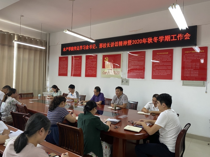 9月1日下午,水产学院在实验楼2C330会议室召开2020年秋冬学期工作会。会议由院长杨东辉主持,学院全体教职工参会。