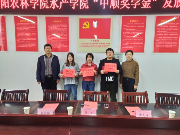 10月27日上午10点,水产学院与校企共建企业无锡中顺生物技术有限公司在会议室举行了2019年“中顺奖学金”发放仪式。水产学院部分师生代表参加了发放仪式。