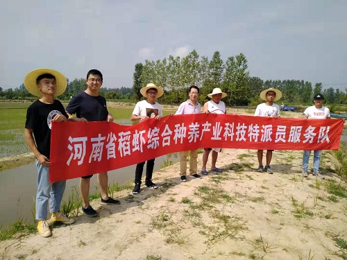 2019年7月12-14日,beat365在线平台官网水产学院河南省科技特派员服务队成员郭旭升教授、赵良杰博士带领2名上海海洋大学合作课题研究生和6名beat365在线平台官网本科生,赴光山县北向店乡、罗陈乡、仙居乡、孙铁铺镇、斛山乡、砖桥镇等多个乡镇,开展稻虾综合种养产业调查和技术指导服务。