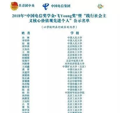 日前,由共青团中央、中国电信集团公司、全国学联共同开展的2018年“中国电信奖学金”暨“践行社会主义核心价值观先进个人”遴选寻访活动落下帷幕。经校级、市级推荐、全国评审及结果公示,水产学院聂海鹏同学获“中国电信奖学金•飞Young奖”暨“践行社会主义核心价值观先进个人”。
