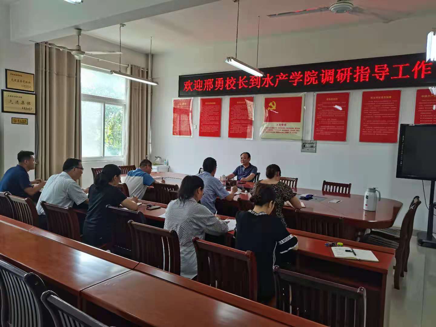 6月24下午,校长邢勇到水产学院调研指导本科教学合格评估工作。会议由水产学院党总支书记、院长郭旭升主持。水产学院科级以上干部、专业负责人及相关核心课程骨干教师参会。