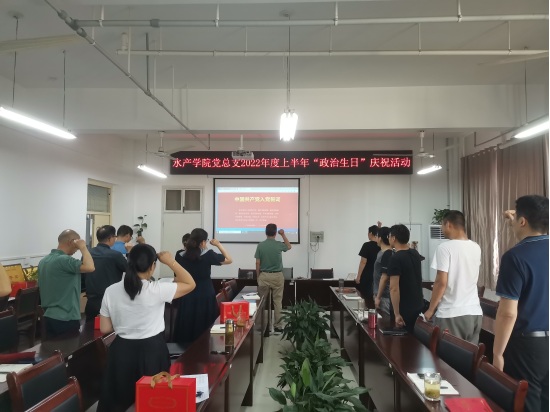 水产学院党总支书记、院长郭旭升首先对过政治生日的同志表示祝贺。总支精心准备了“政治生日”贺卡和“政治生日”礼物——“党在我心中”暖暖杯,为过政治生日的党员送上组织的温暖。水族科学与技术教工党支部书记孟瑾作为党员代表,结合自身成长畅谈了生日感言。活动中,与会同志重温了入党誓词,认真聆听了郭旭升同志以《做新时代合格党员以优异成绩迎接党的二十大胜利召开》为题讲的一堂精彩党课。同志们纷纷表示,要进一步坚定理想信念,牢记党员职责使命,听党话、感党恩、跟党走,做新时代合格党员,以实际行动和优异成绩迎接党的二十大胜利召开。