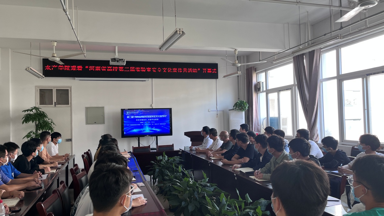 9月22日上午,水产实验教学中心组织学院教师和学生观看了“河南省高校第二届实验室安全文化宣传月活动”开幕式暨安全培训视频直播。