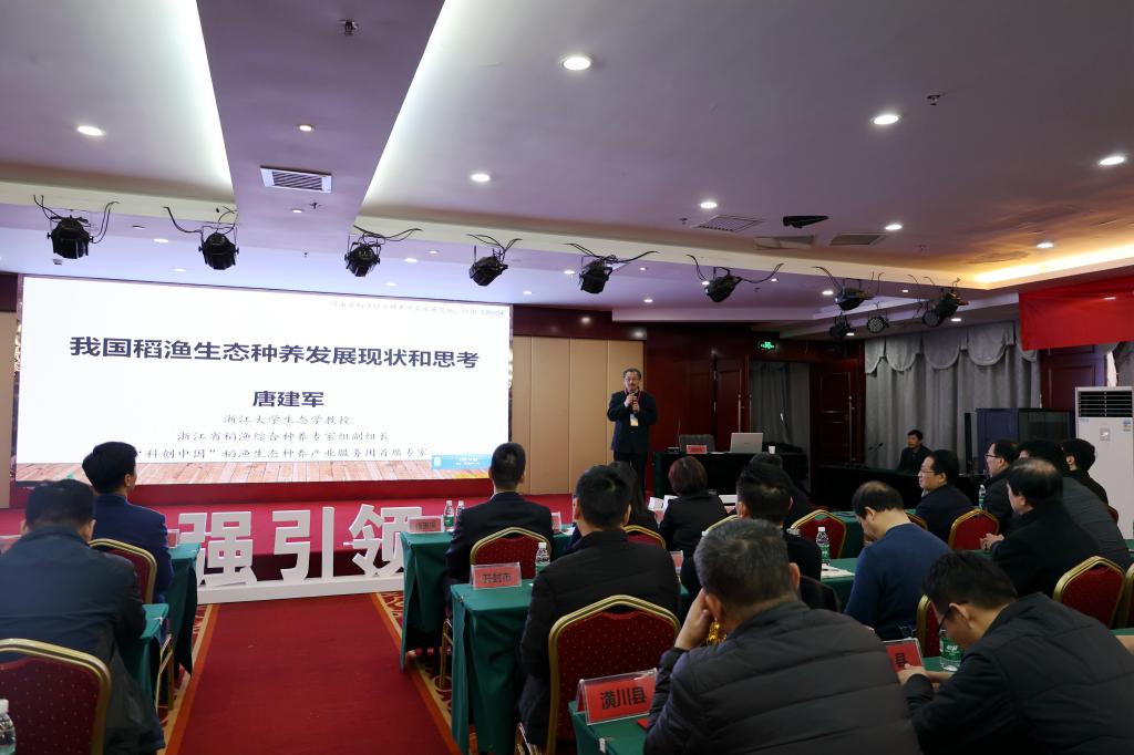 3月23日下午,河南(信阳)首届优质“渔米”评比暨稻渔综合种养产业博览会启动仪式在开元大酒店多功能会议室举行,启动仪式由省农业农村厅水产局局长马玉琴主持。副市长汪明君、省农业农村厅总农艺师杨玉璞分别致辞。副校长刘开华,各市县相关负责人、企业代表,水产学院党总支书记、院长郭旭升等师生代表参加启动仪式。