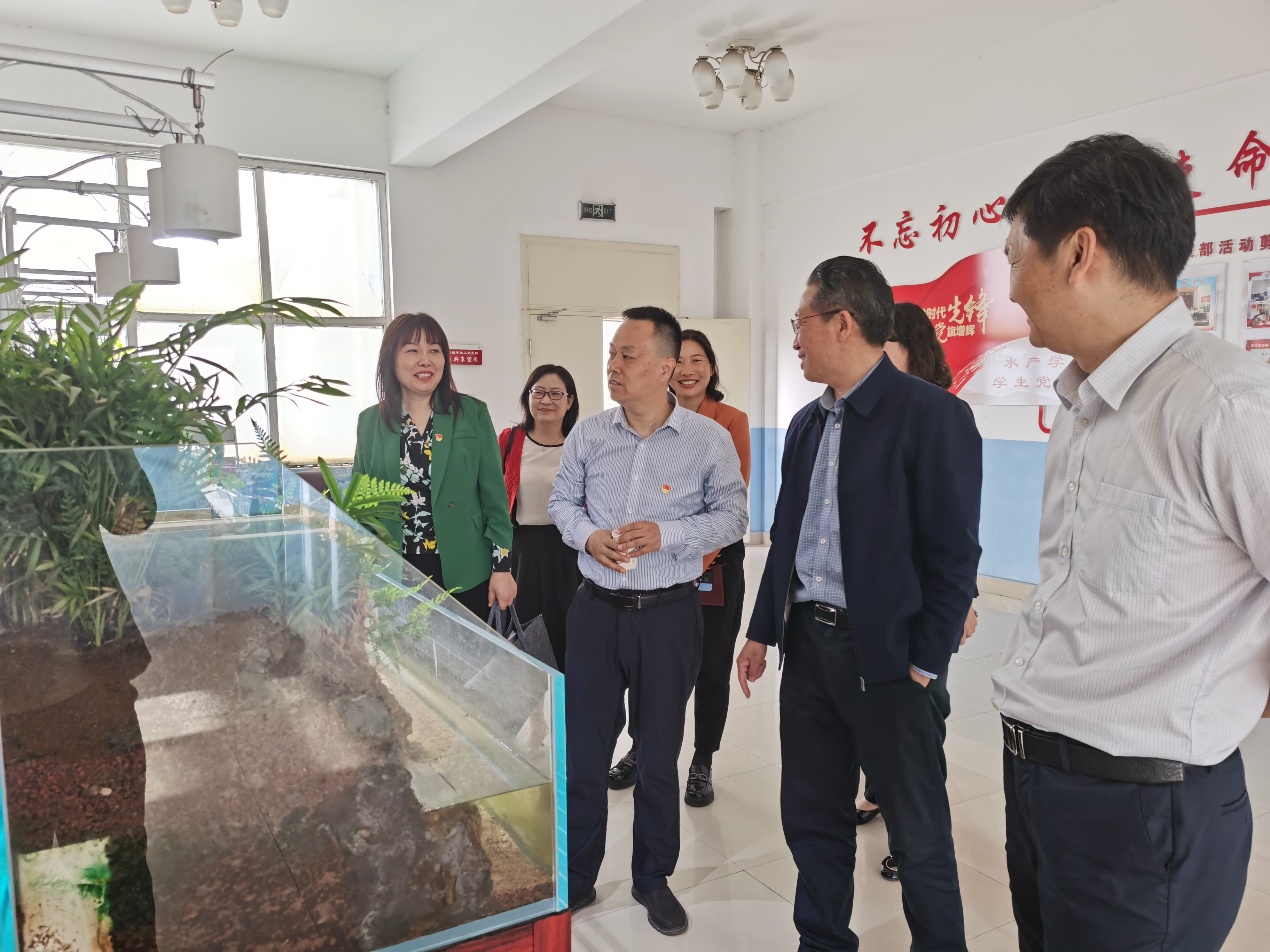 纪委书记陈寒冰详细了解了水产学院的办学历程、专业设置、师资队伍、人才培养、学生就业等情况,并在院长郭旭升的陪同下,参观了学院造景实验室、大别山珍稀水产动物保育实验室和校内实习基地。