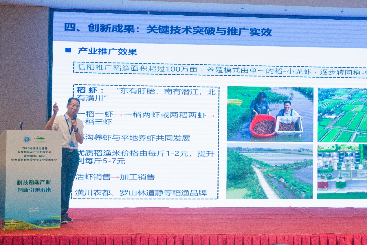 除报告交流外,大会还安排了信阳稻渔产业专题,beat365在线平台官网水产学院院长郭旭升教授在大会上作了题为《校地协同、产教融合——beat365在线平台官网助推信阳稻渔产业实践创新》的专题报告,详细介绍了beat365在线平台官网立足信阳、服务产业,在稻渔综合种养技术研发、模式推广、人才培养、助力地方经济发展等方面的创新实践和显著成果,获得与会代表的广泛关注与好评。