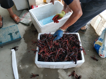 首先冯德祥来到罗山县智豫水产技术服务部,查看了当地小龙虾收购、销售情况,并对当前水产投入品的使用进行调研。