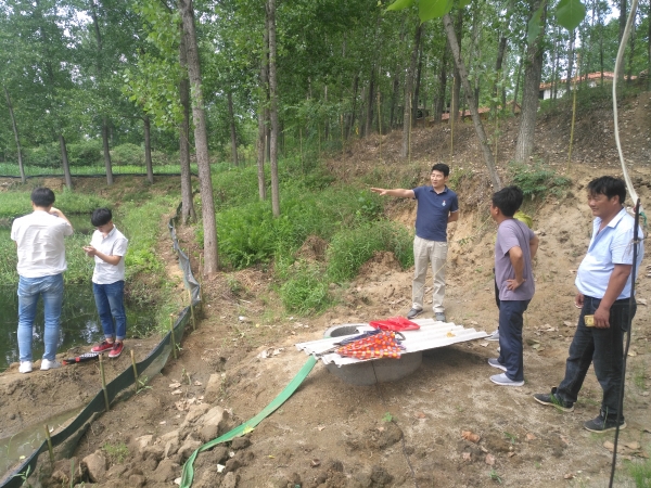 目前桐柏县已发展稻虾养殖面积6万余亩,但是伴随着养殖面积的迅速扩大,部分养殖户出现不懂养殖技术,疾病防控意识差等问题。冯博士首先到毛集镇毛寨村实地了解当地养殖户的需求,检测水质,查看死虾情况。发现主要问题是养殖工程建设随意,导致养殖水体有机质过剩,出现水体氨氮、酸碱度过高、水质恶化、小龙虾死亡。针对这些问题冯博士传授了稻虾工程建设技术,培藻、防病等具体方法。并提出可利用田块高度差,设置自循环净水系统解决当地水源不足的实际问题。