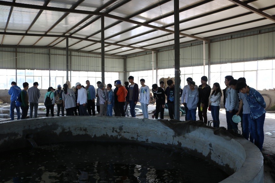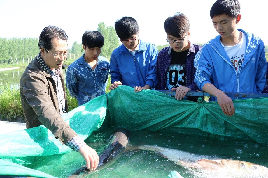 在小龙山鱼类良种繁育场,《鱼类增养殖学》的课程主讲教师郭旭升教授进行了现场授课,对鱼苗孵化池的设计原理、进出水循环系统、亲鱼雌雄的鉴别、鱼苗的发育过程等知识进行了系统的讲解,回答同学们的提问。同学们纷纷表示这次收获非常大,看到了书本上的理论课程是如何应用于生产实践的,加深了理论实习的学习和掌握。
