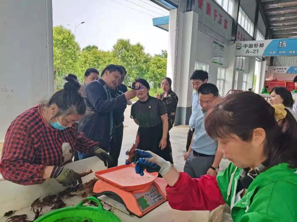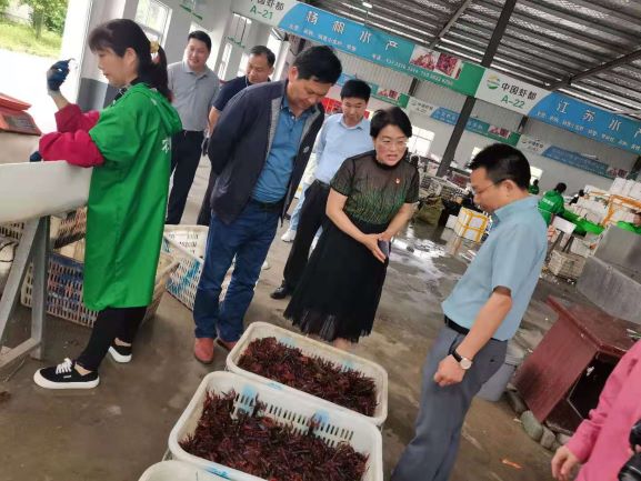 在潢川农都集团,服务团团长杨东辉向视察工作的市科技局局长黄晓赟汇报了稻虾综合种养的概况及服务团在潢川县稻虾综合种养的推广情况和模式创新情况。在稻虾养殖模式上面,服务团充分结合潢川县的产业优势,运用多营养级立体养殖理论,积极培育推广“稻-虾-鳖共作-连作”养殖模式;在引进新品种方面,服务团相继引入澳洲龙虾、沙塘鳢等新兴养殖品种,增加养殖品种多样性,降低养殖风险;在技术和设备优化方面,服务团积极推动小龙虾精养和繁养分离技术、早苗温室培育技术、青苔防控技术、底部增氧技术等在生产上的应用。黄晓赟局长听完汇报后,要求服务团再接再厉,争取把潢川县的特色做强做大,引领示范推广。