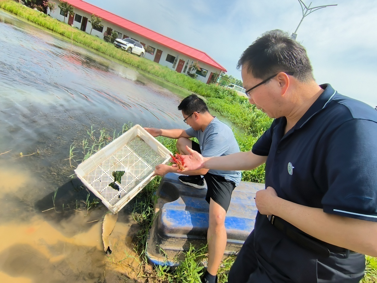 28日,科技特派员服务队一行人来到商城县恒源种养殖专业合作社。据该合作社负责人章总介绍,其生产的“渔谷章”大米入选2022年度信阳市知名农业品牌目录,2023年河南(信阳)首届优质“渔米”评比中获一等奖。特派员们与负责人就近期合作社稻虾养殖中遇到需要解决的问题进行交流,随后了解该合作社夏季养殖管理、水质调控、水草维护等方面内容。在实地查看小龙虾养殖池塘之后,专家指出针对合作社优质的养殖水质,可以养殖一些经济价值稍高的名特优水产品种来提高养殖效益,并介绍相关地区优秀的养殖经验,同时提醒小龙虾要尽快上市。