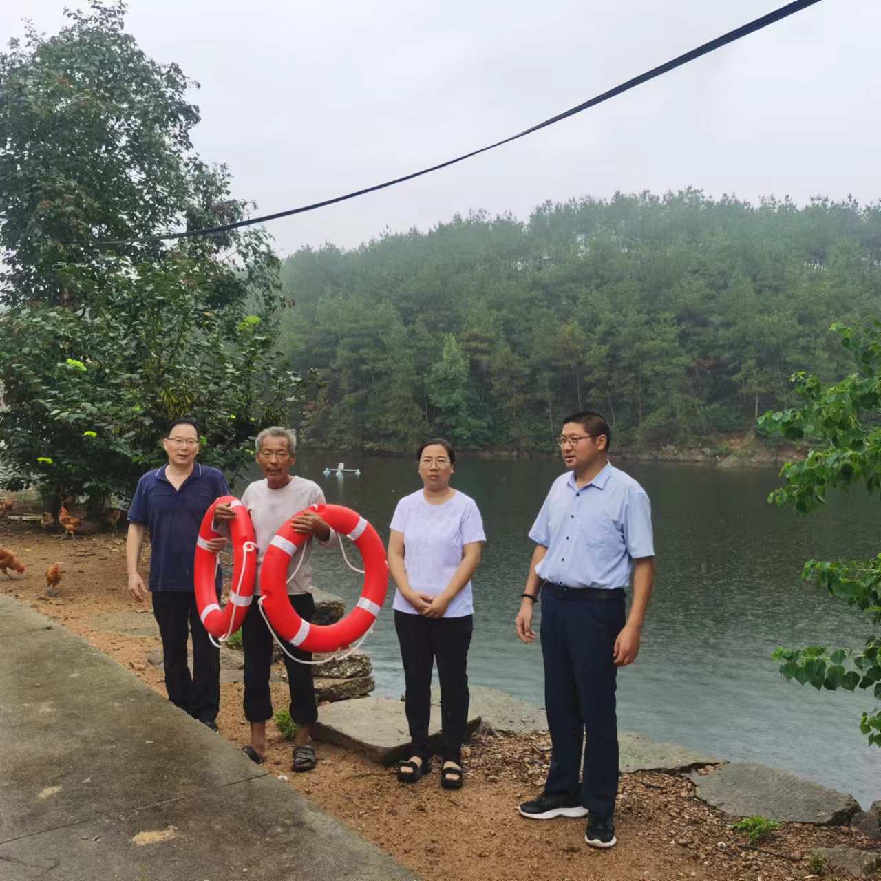 30日上午,科技特派员服务队来到商城县金刚台镇杜畈村养殖示范户王家银所在的老虎冲水库。由于前期雨水较多,水库水位上升过快,特派员们建议10月份前后打孔放水,这样会使位于高水位的库尾露出水面,可以趁机暴晒水库底泥,然后用生石灰消毒,达到改善水库水质环境的目的。另外发现该水库周围养殖不少鸡、鹅群,特派员们建议圈养畜禽,以免粪便进入水库污染水质导致养殖鱼类患病。最后特派员向负责人赠送了游泳圈,挂在水库边上,以免暑期溺亡事件发生。