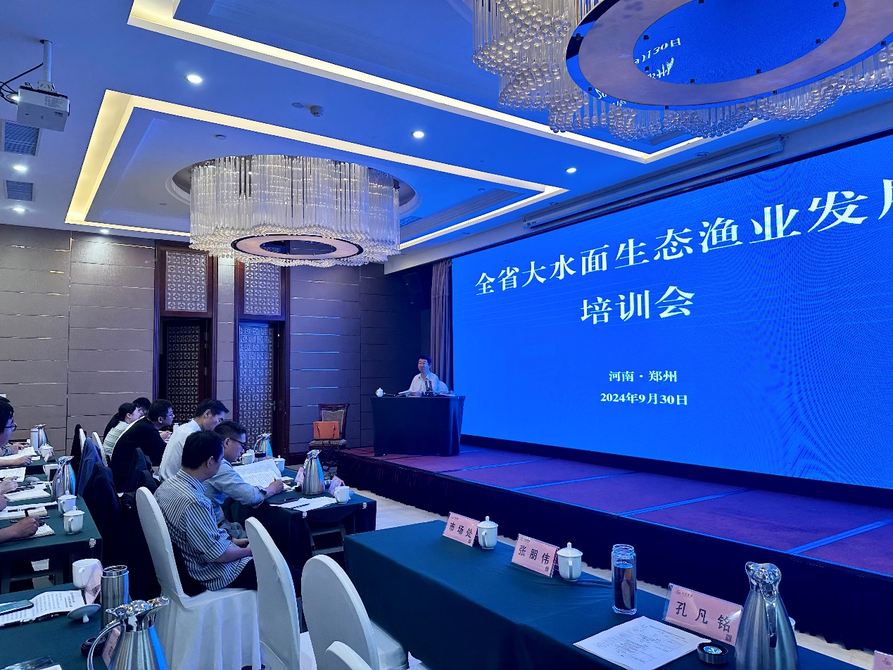 9 月 30 日的培训会上,信阳市水产技术研究服务中心、福来品牌咨询公司依次介绍了信阳水库渔业联盟建设情况和农业品牌运营与管理,以及省农投集团介绍的 “豫农优品” 发展运营情况。之后,全国水产技术推广总站副站长陈家勇对国家大水面生态渔业发展政策进行了针对性的讲解,使教师团队及时了解到最新的政策动态。