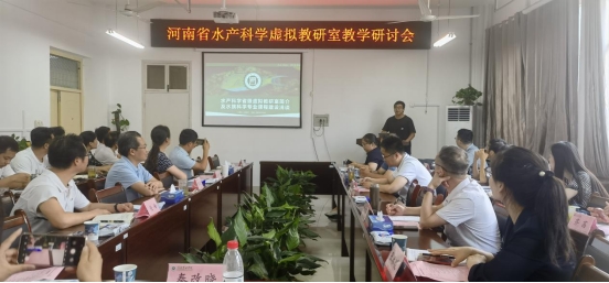 7月8日下午,河南省水产科学虚拟教研室教学研讨会在我院召开。虚拟教研室负责人郭旭升教授及应邀的河南师范大学水产学院孟晓林副院长、张建新副院长、河南科技大学动物科技学院张春暖副教授、河南农业大学动物科技学院刘变枝副教授、河南牧业经济学院动物科技学院徐秋良副院长、秦改晓博士等,以及教研室成员、教师代表等30余人线下参会。