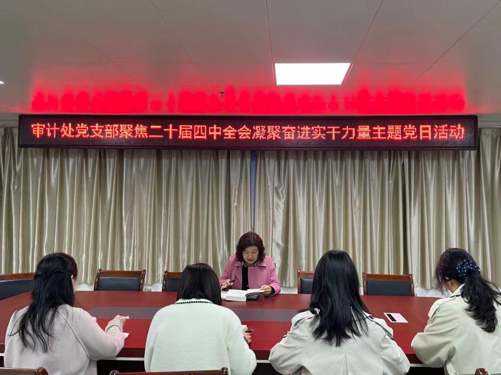为统一思想认识,凝聚奋进力量,引导支部党员准确把握二十届四中全会核心要义,审计处党支部于10月30日开展题为“聚焦二十届四中全会 凝聚奋进实干力量”的主题党日活动。