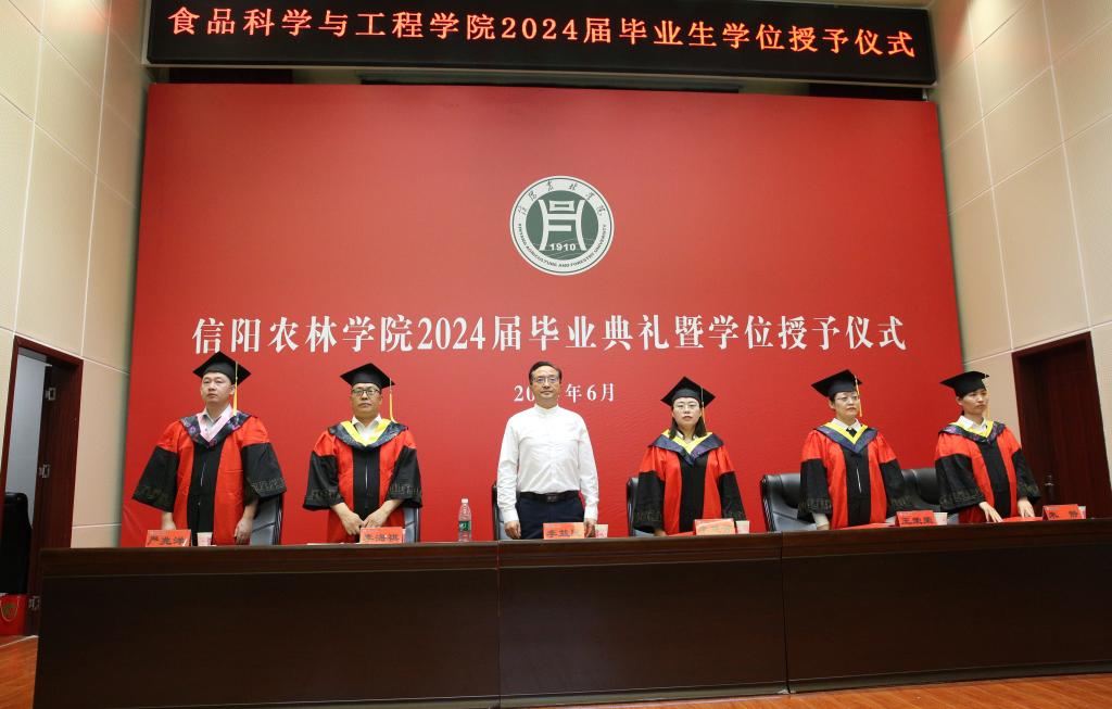 随着庄严、激昂的国歌,2024届毕业典礼及学士学位授予仪式正式拉开序幕。仪式上,食品科学与工程学院学位评定分委员会副主席、学院副院长王荣荣宣读了2024届毕业生学士学位授予决定,副院长朱静宣读了关于表彰2024届优秀本科毕业论文(设计)的决定,党总支书记李海祺宣读了2024届本科毕业生考研录取名单。