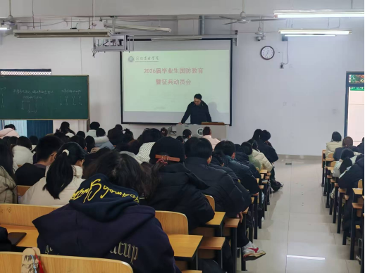 为深入贯彻落实习近平强军思想,进一步加强毕业生国防教育,引导青年学子树立正确的国防观念和就业择业导向,1月13日,食品科学与工程学院在第二教学楼306教室召开2026届毕业生国防教育暨征兵动员大会。学院全体毕业生参加会议,学院武装专员柳诚刚担任主讲。