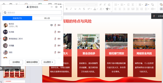 学生第二党支部围绕消防安全(烟花爆竹)、道路交通安全、心理健康、防范电信网络诈骗、网络安全等工作开展法治宣传教育。