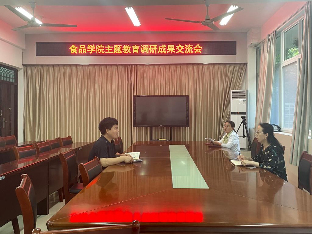6月20日下午,食品学院召开以“学思想、强党性、重实践、建新功”为总要求的主题教育调研成果交流会。学院党总支副书记刘涛,副院长李建芳、邵颖参加交流会。
