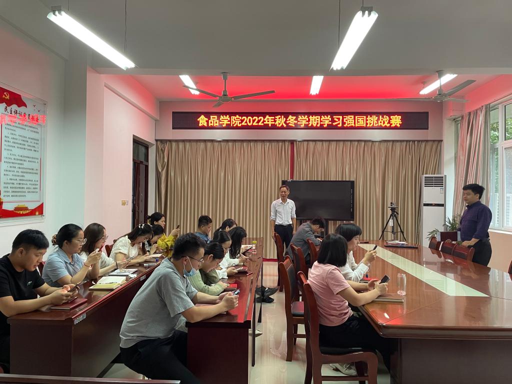 为喜迎党的二十大,充分调动学院党员教师学好用好“学习强国”学习平台的积极性和主动性,营造比学赶超的浓厚氛围。9月16日下午,食品学院在科技楼1B206会议室举办2022年秋冬学期“学习强国”答题挑战赛。