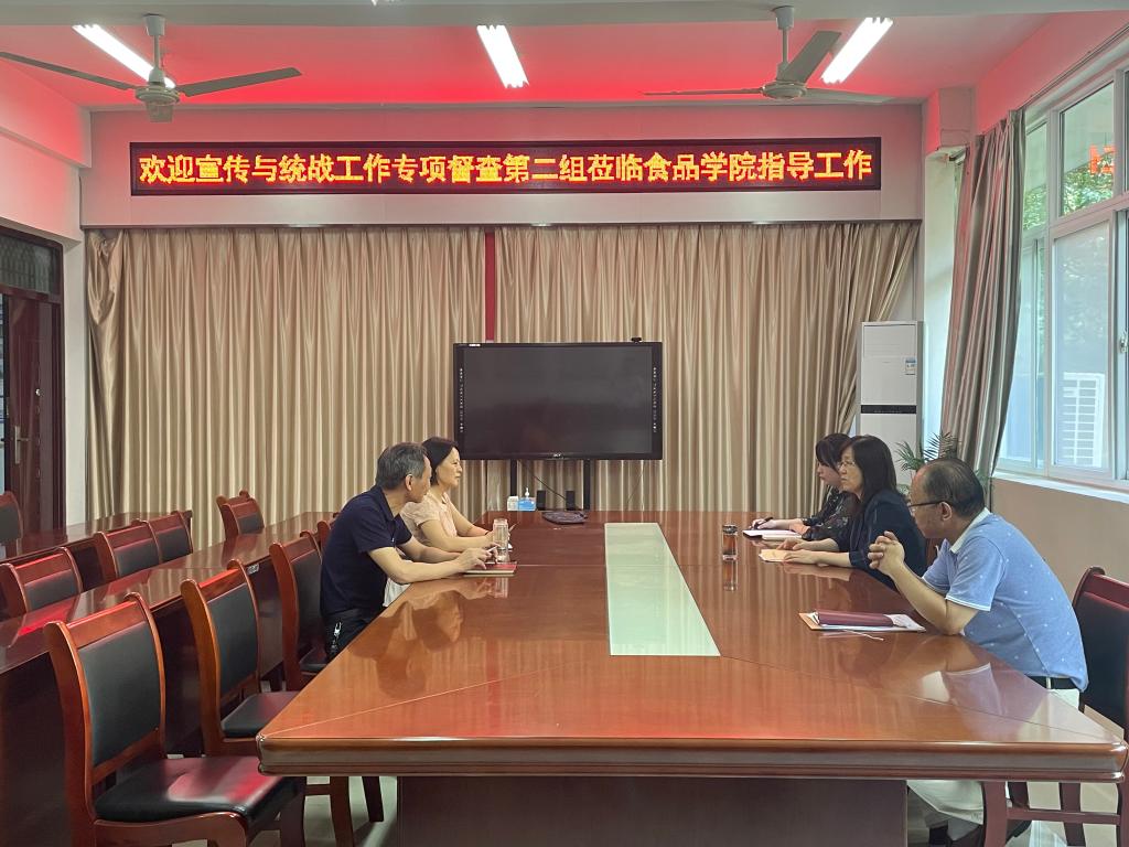 9月8日,校宣传与统战工作专项督查第二组组长、党委委员、统战部长张婷一行到食品学院指导工作。张婷一行首先查看了食品学院2022年宣传与统战工作开展情况及相关支撑材料。随后抽取10名教师进行理论测试。最后,在食品学院会议室与学院主要领导进行座谈。