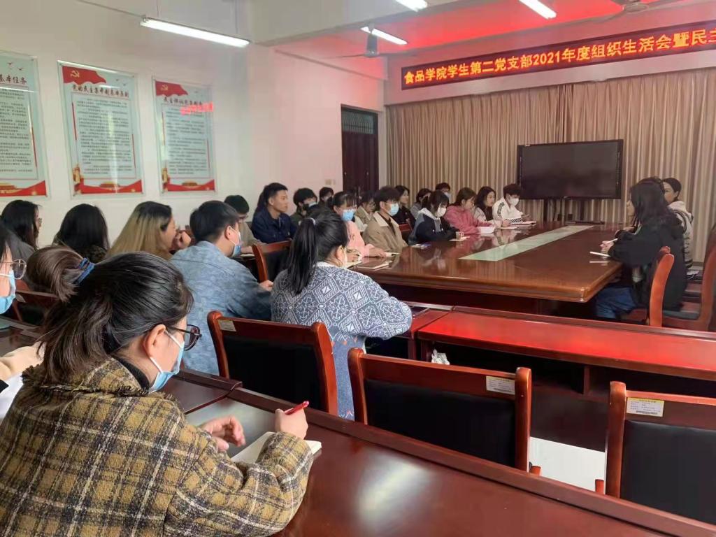 根据《中共河南省委组织部转发〈中共中央组织部关于召开2021年度基层党组织组织生活会和开展民主评议党员的通知〉的通知》(豫组通〔2021〕41号)和《beat365在线平台官网2021年度党支部组织生活会和开展民主评议党员实施方案》(信农组发〔2022〕4号)文件要求,食品学院学生第二党支部于2022年2月22日召开了2021年度组织生活会暨民主评议党员大会。会议采用线上线下相结合的方式进行,会议由支部书记柳诚刚主持。
