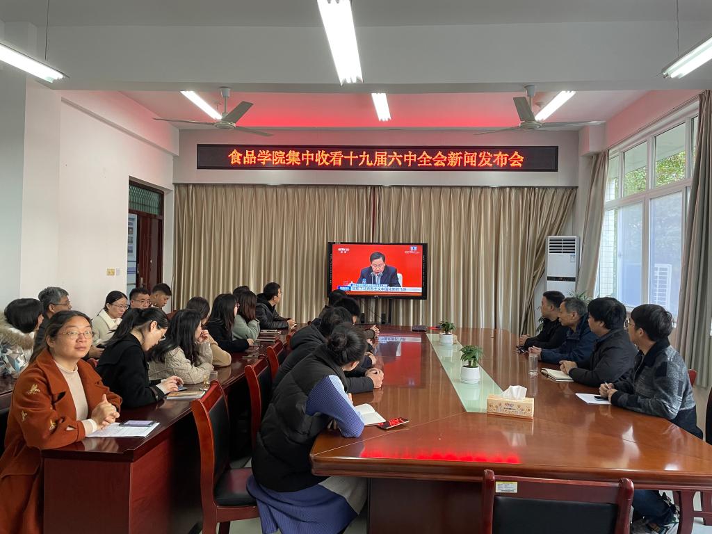 11月12日上午,食品学院组织师生代表在会议室1B206集中收看学习党的十九届六中全会精神新闻发布会。