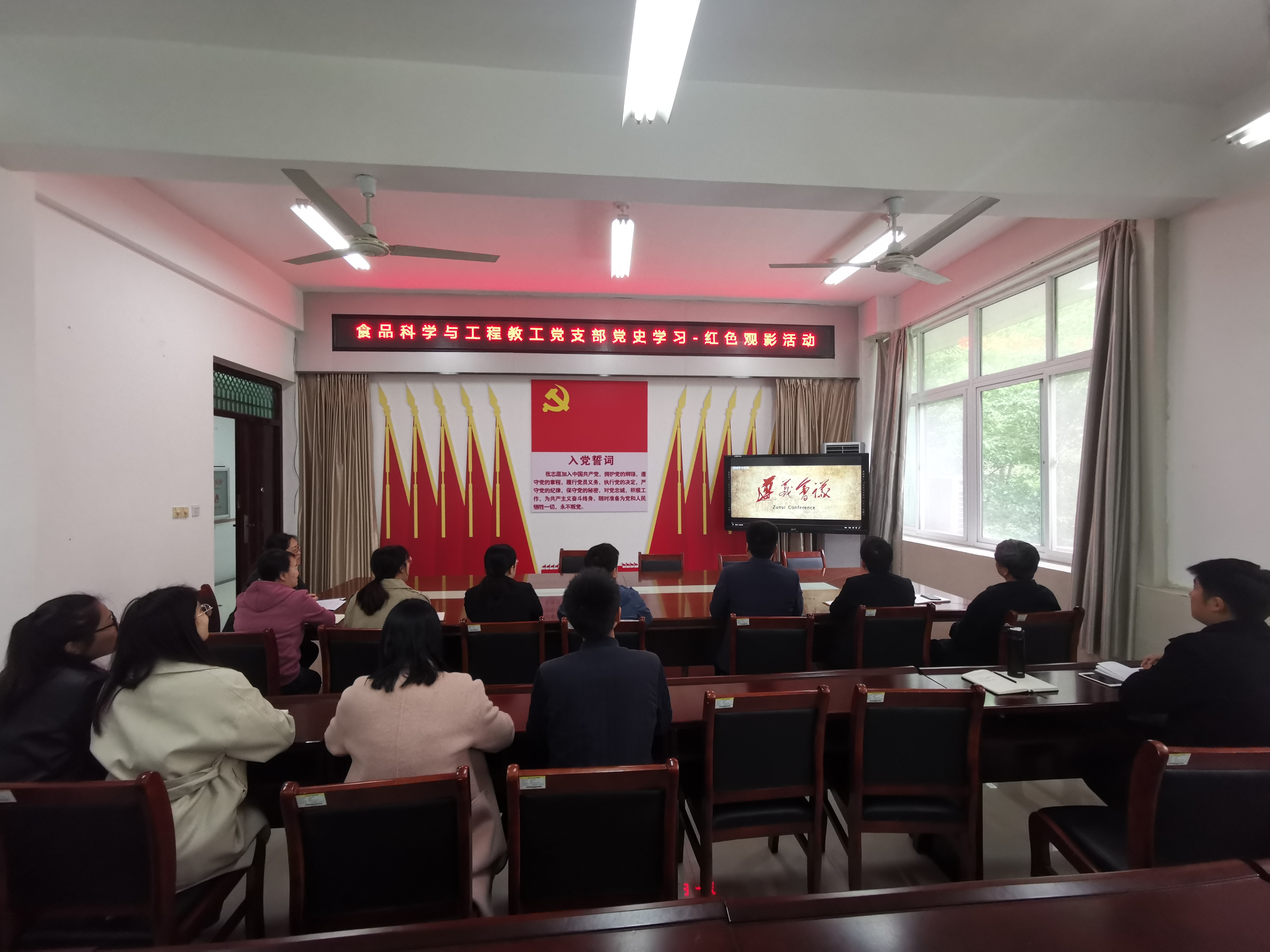为深入推进党史学习教育,做到“学史明理、学史增信、学史崇德、学史力行”,4月25日中午,食品学院党总支食品科学与工程教工党支部在1B206举行党史学习-红色观影活动,支部全体党员参加并观看电影《遵义会议》。